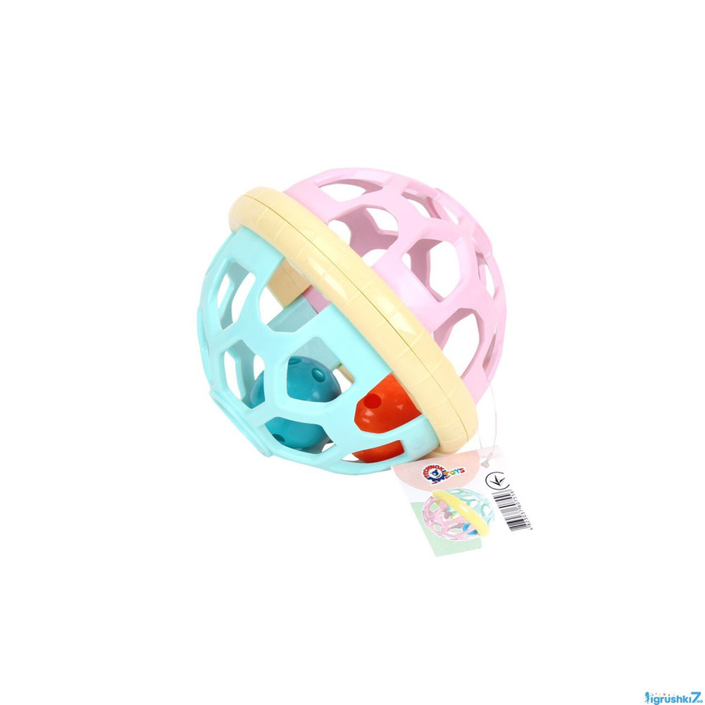 У середині двох скріплених між собою півкуль, у процесі руху, смішно дзвенять два маленькі м'ячики, і цей звук миттєво приковує до себе увагу і слух дитини.