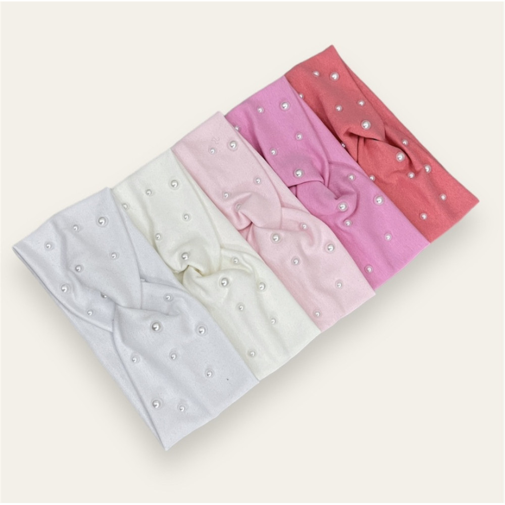 Дитяча трикотаддна пов'язка із перлинками. Розмір 50-54.