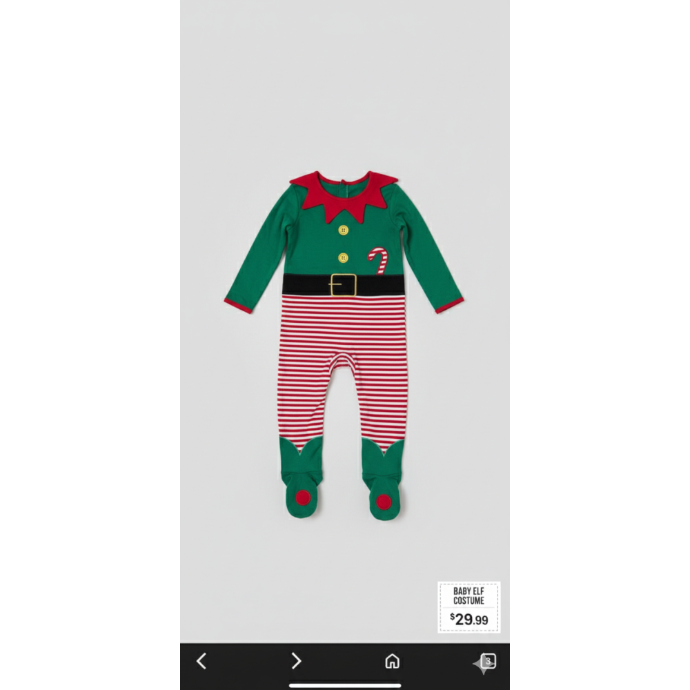 Карнавальний комбінезон для немовлят, виконаний у традиційних різдвяних кольорах. Підходить як святкове вбрання або піжама.