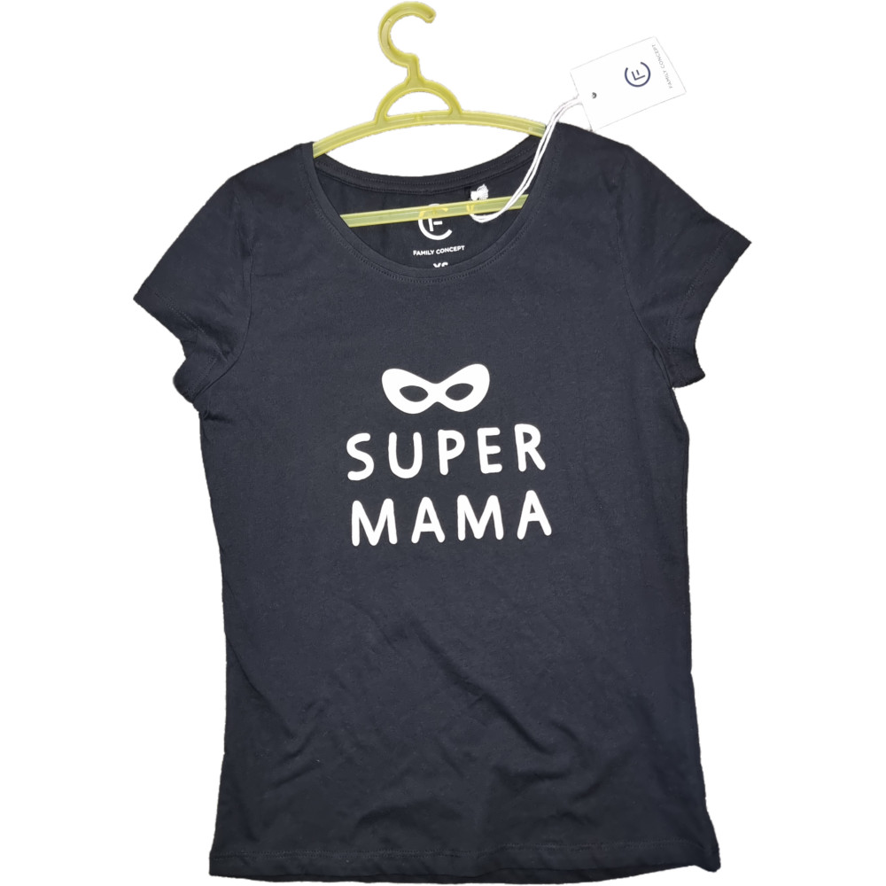 Котонова чорна футболка із принтом "Super Mama".
