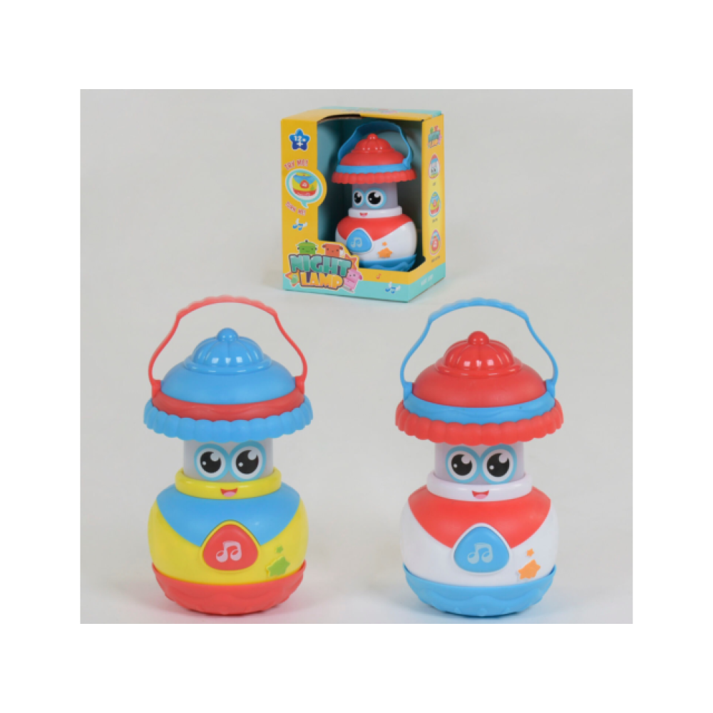 Музикальний Нічник – являє собою розвиваючу іграшку зі світловими та звуковими ефектами. Кнопка у вигляді трикутничка включає веселі мелодії та підсвічування. Також ефекти включаються, якщо іграшку легенько потрясти. Завдяки наявності заводного механізму, основа нічника може крутитися. Крім розваги малюка, ця іграшка буде корисна у розвитку моторики, колірного та слухового сприйняття. Ефекти працюють від батарейок, що входять до комплекту.