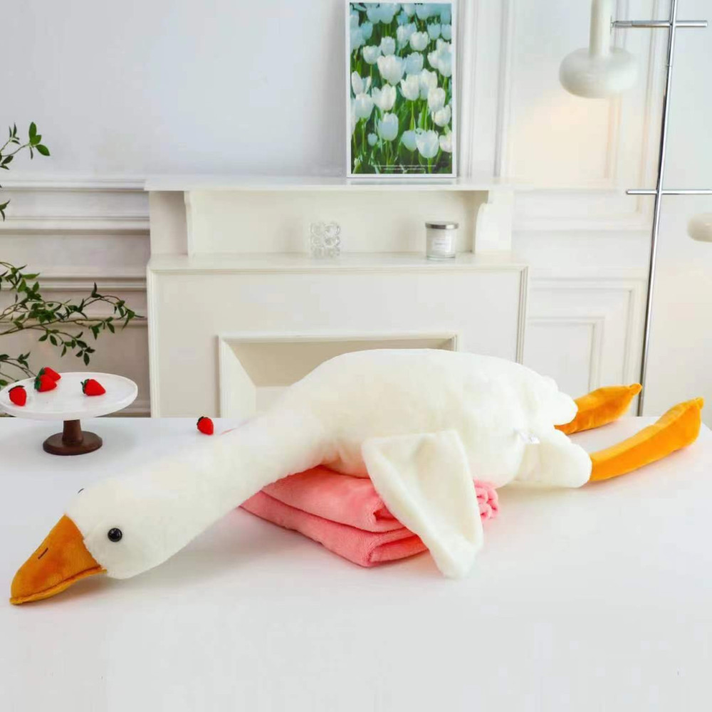 Класнюча якісна іграшка. У животику є пледик розміром 110*150. Довжина гусака 130 см.