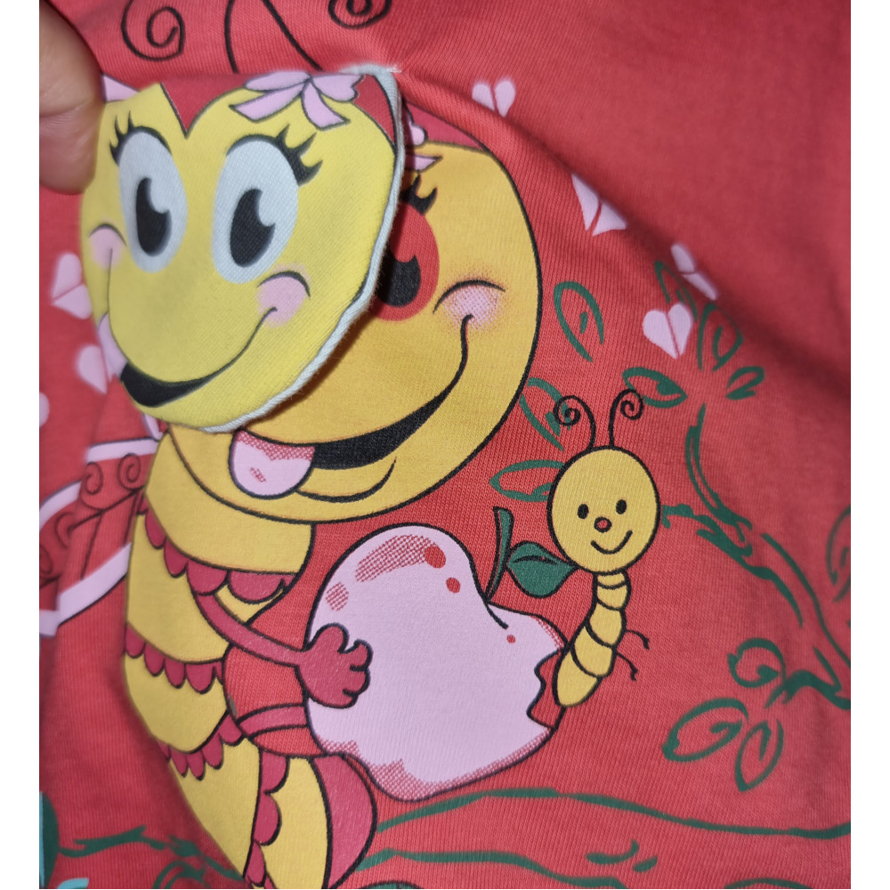 Класний котоновий костюм двійка. Голівка бджілки піднімається. Турецьке виробництво. У червоному кольорі розмір 80, 92, 104. У зеленому кольорі- розмір 80, 104.