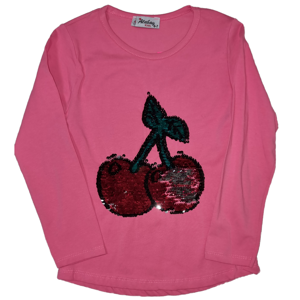 Класний регланчик із вишеньками із блискіток-перевертнів, з іншої сторони срібного кольору.