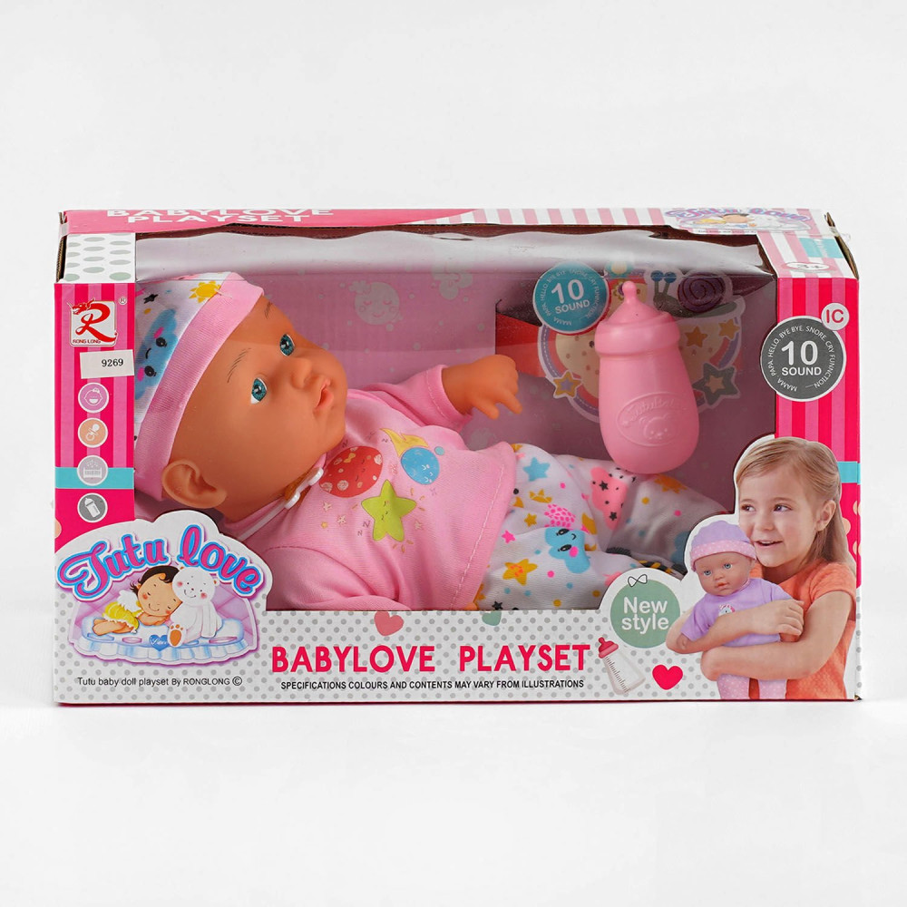 М'якотілий пупс підкорить серце майбутньої господині своїм славним зовнішнім виглядом та реалістичним функціоналом! Смішні риси обличчя, невеликі вушка і добрі очі створюють образ славного маленького малюка, а стильний комбінезон з шапочкою лише доповнюють його. М'яке текстильне тіло приємне на дотик і не завдає дискомфорту під час сну з іграшкою. Усередині пупса знаходиться музичний чіп, який відтворює 10 характерних малюків звуків та фраз англійською мовою.