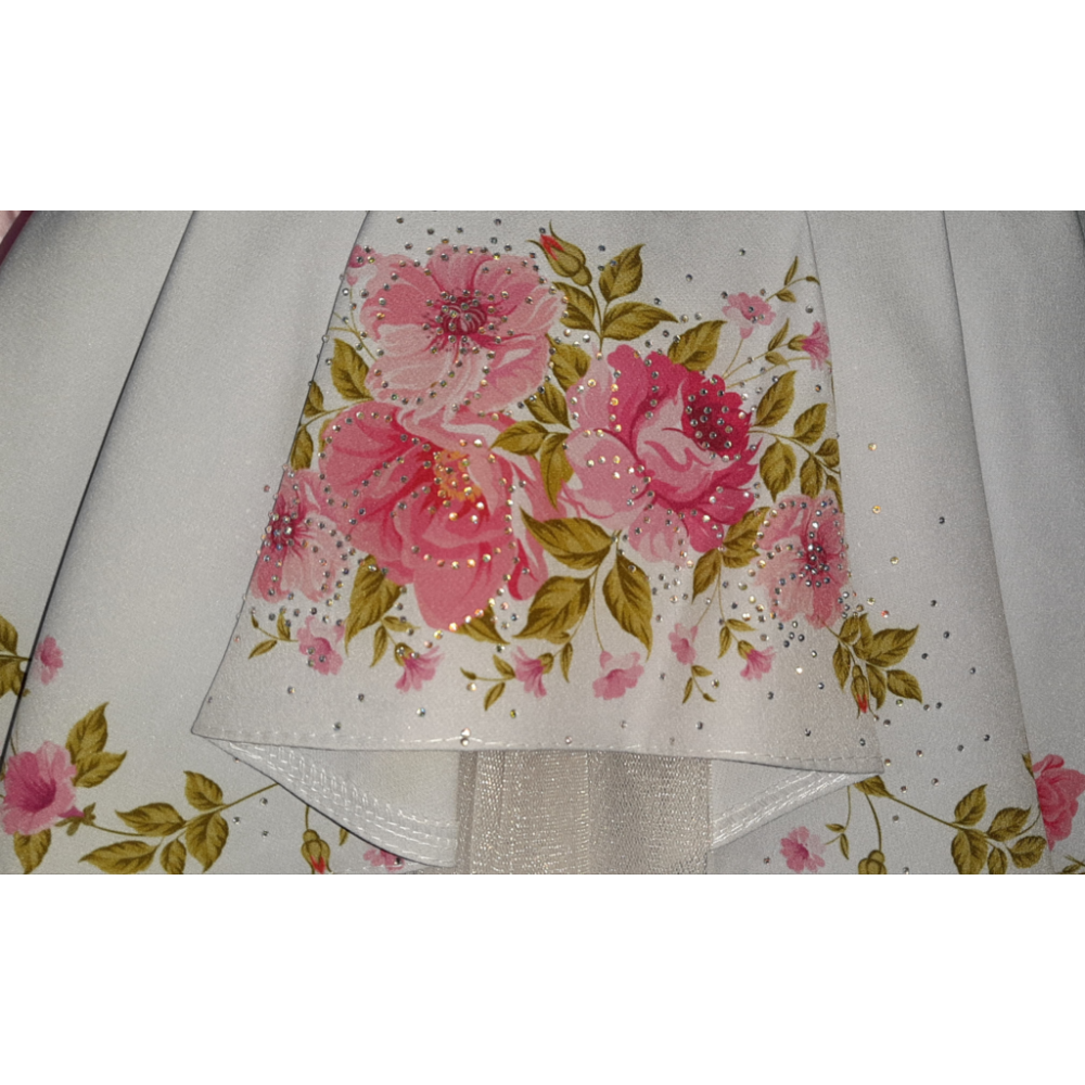 Дуже красива сукня,пишний низ,потаємний замочок на спинці. Квіточки прикрашені камінцями.