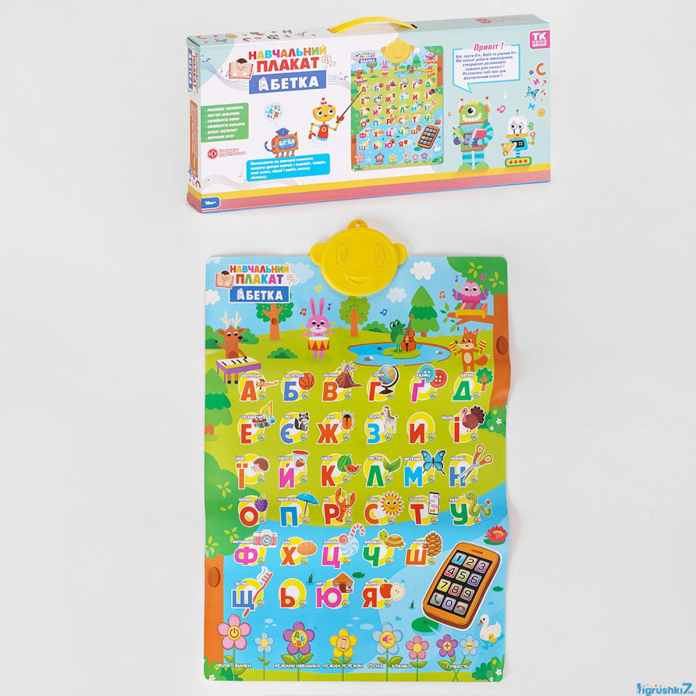 Іграшка розвиває уважність, логічне мислення, тренує дрібну моторику. Малюк навчиться розпізнавати нові кольори та звуки, вивчить український алфавіт та кумедні вірші.