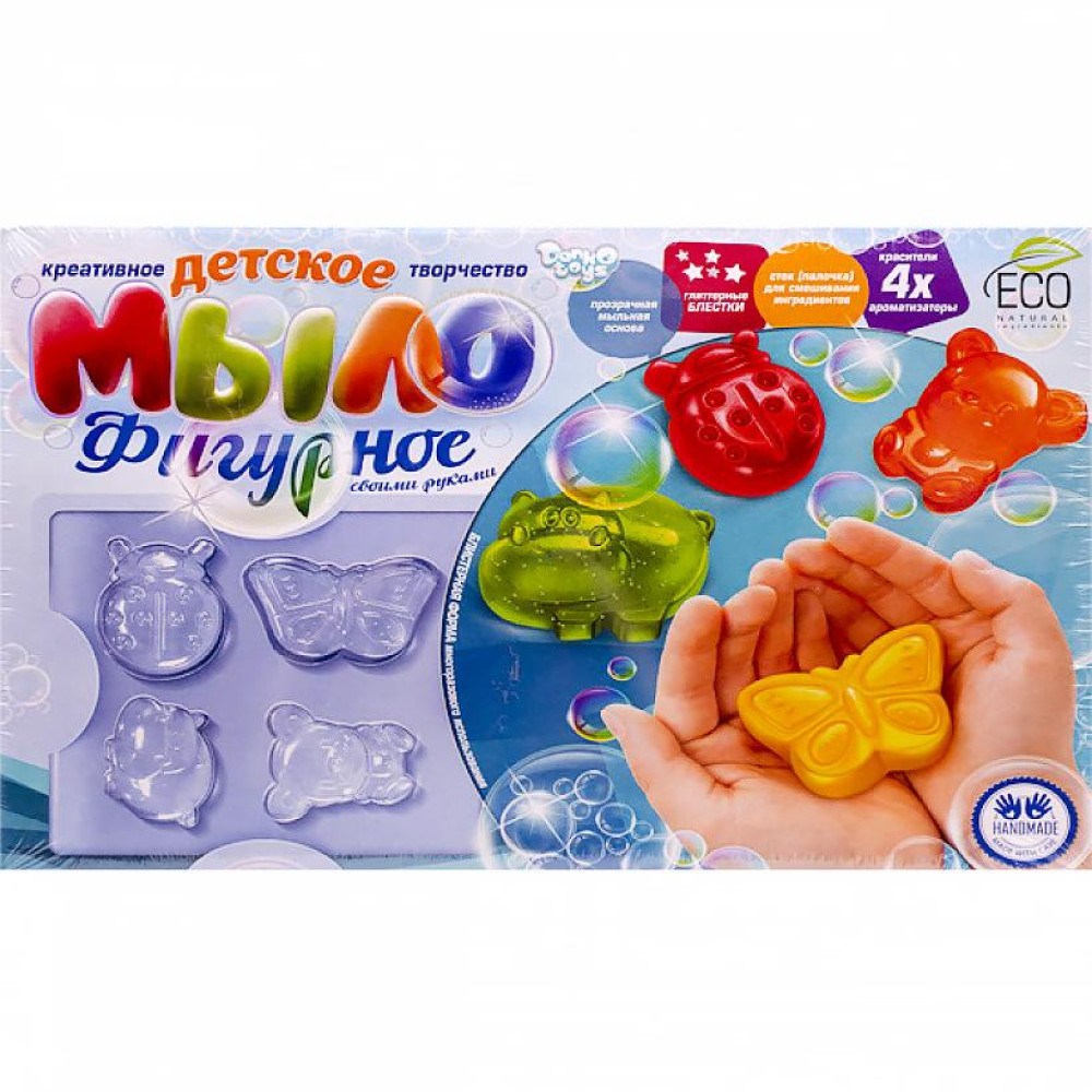 4 мила у 1 наборі! Миловаріння – це захоплюючий процес та прекрасна спільна творчість дітей та дорослих. Мило, приготовлене за допомогою цих наборів, не тільки гарне, але й має чудовий аромат натуральних ефірних олій! В комплекті: прозора мильна основа, різнобарвні глітерні блискітки, блістерна багаторазова форма для мила, ароматизатор харчовий 4 шт. (полуниця, персик, лимон, яблуко), харчовий барвник 4 шт. стек, докладна інструкція. Розмір упаковки: 29х20х3, 5 см. Вік: 5+