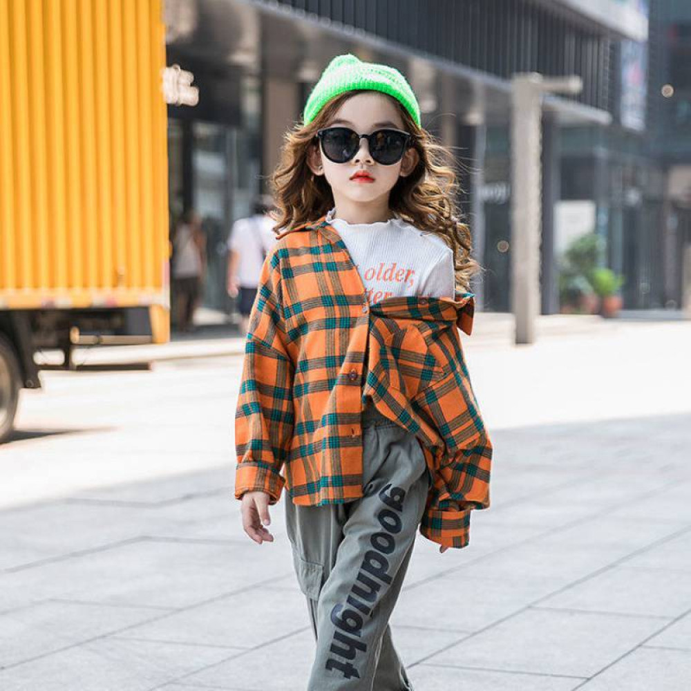 Стильна помаранчева сорочка в клітинку, унісекс. Фабричний Китай. Спинка подовжена,рукавчик-oversize.
