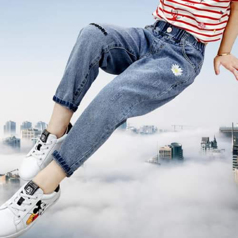 Стильні джинси моми із ромашкою, талія на резинці, добротний джинс. Фабричний Китай.