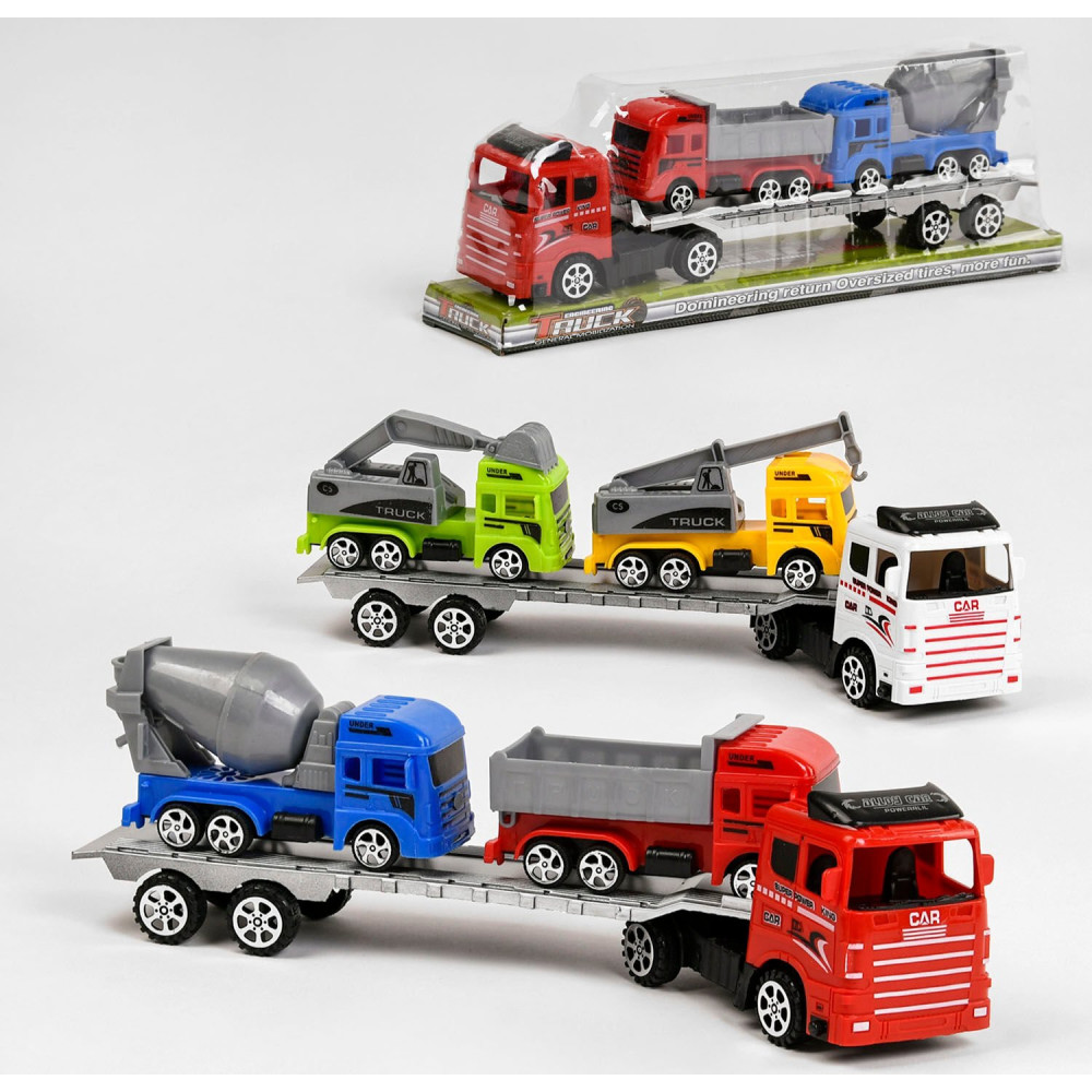 Набір машинок, тягач, який перевозить два види спец транспорту стане чудовою грою, що втягує, для вашої дитини. Інерція в русі тягача дозволяє йому швидко перевезти машини, які йдуть із ним у наборі. Гра за рахунок дрібних деталей допоможе розвинути дрібну моторику малюка і його фантазію, а також вивчити нові види транспорту.