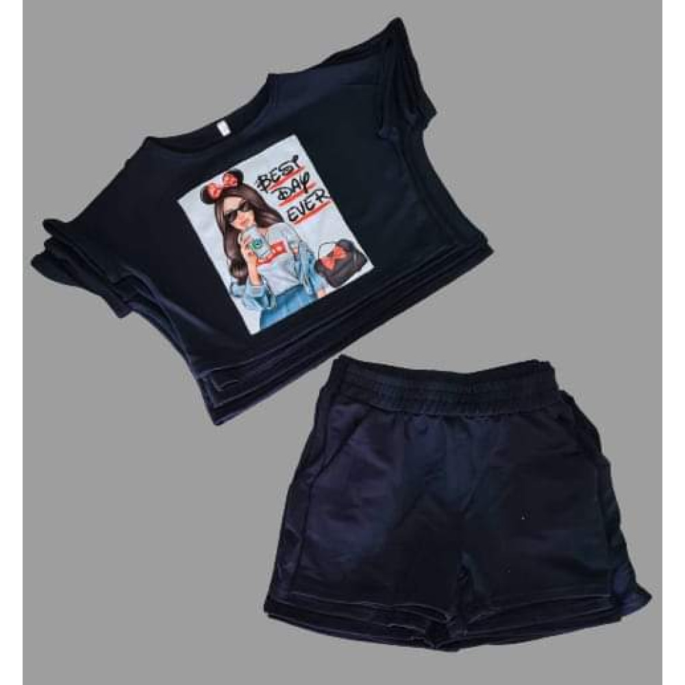 Трикотажний практичний та стиьний костюмчик. На шортиках є кишеньки. Топ укорочений у стилі oversize.